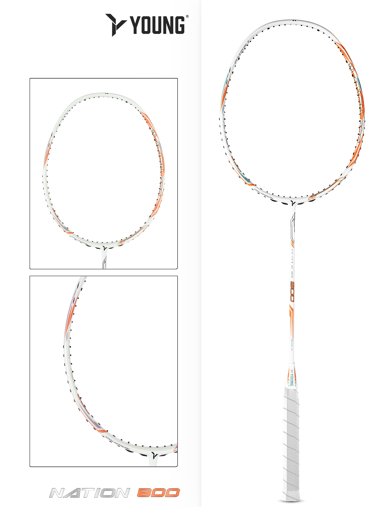 Rám a shaft raket řady Nation jsou vyrobeny z 40T japonského high-modulus grafitu, vysoce kvalitního materiálu, který zvyšuje pevnost a odolnost rakety, aby zvládla vysoké napětí výpletu, což umožňuje silnou a agresivní hru.